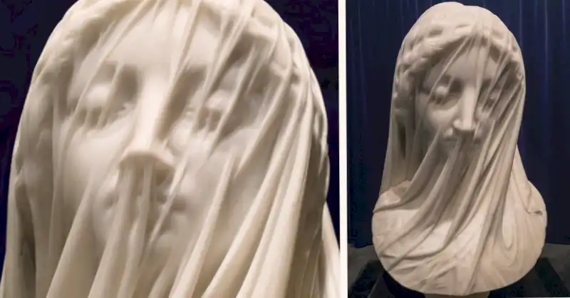 La Virgen del Velo es una pieza única por su finura y detalle. El artista italiano demostró una gran habilidad en el manejo del mármol, logrando crear texturas y formas que parecen vivas. La curva de los brazos, la posición de las manos y la expresión en el rostro de la Virgen María están talladas con una precisión que es difícil de igualar. Cada rasgo, cada forma y cada línea está pensado para transmitir un sentimiento de tranquilidad y armonía.
