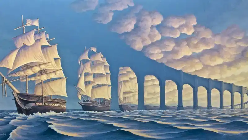 La obra de Rob Gonsalves no podría haber sido posible sin la inspiración y la guía de algunos de los máximos exponentes del surrealismo. Entre ellos, destaca el legendario Salvador Dalí, cuyas creaciones más emblemáticas han influido en la forma en que Gonsalves aborda el tema de la ilusión óptica. La misma capacidad de Dalí para crear escenas inexplicables y desafiantes es algo que podemos encontrar en las pinturas de Gonsalves, que nos invitan a cuestionar nuestra comprensión del mundo real.