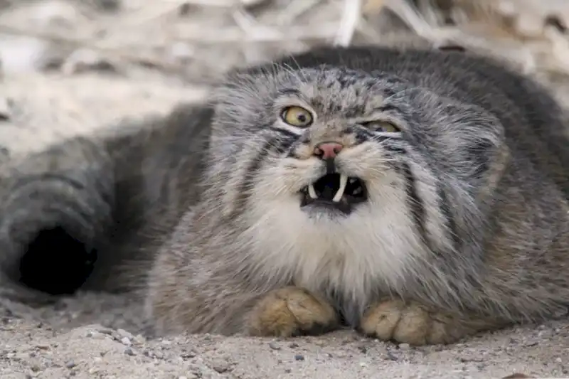 El rostro del gato Manul es uno de sus características más destacadas y fascinantes. La forma y el tamaño de su cabeza son únicos en comparación con otros felinos. Su frente es ancha y plana, con un lunar pronunciado que le da un aspecto extraño pero atractivo. Sus ojos, grandes y redondos, poseen una expresión misteriosa, como si guardara secretos de la naturaleza. La nariz del gato Manul es larga y estrecha, lo que le permite detectar los pequeños detalles olfativos en el desierto. Su boca es ancha y curva, adaptada para tragarse sus presas enteras.